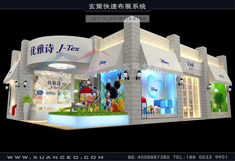 玄策展覽工廠為優(yōu)雅詩參加2013上海紡織展提供展臺制作搭建服務(wù)。